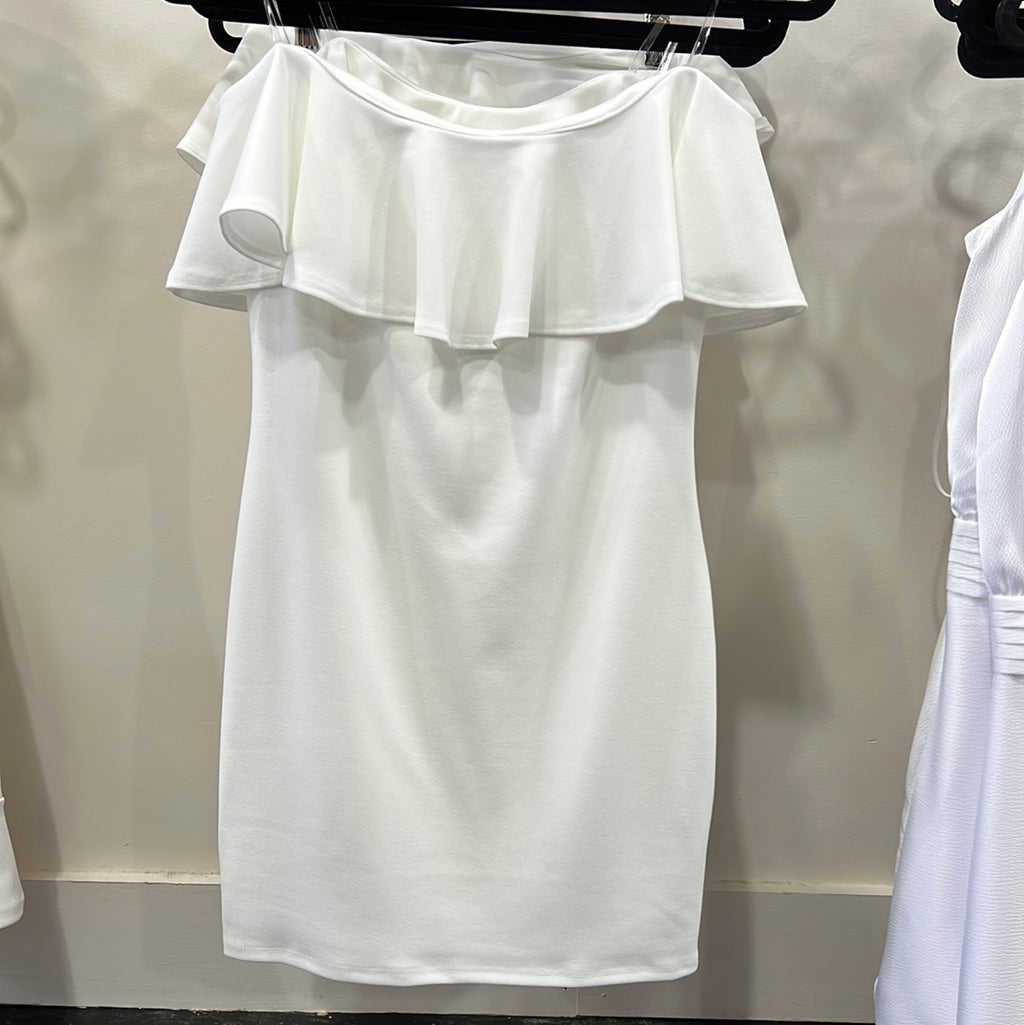 Strapless solid ruched bodice with asymmetrical bubble hem